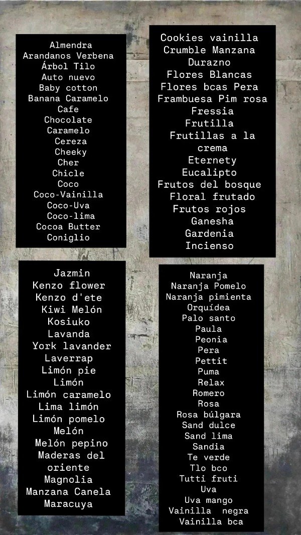 LOS AROMAS SE DETALLAN EN OBSERVACIONES LISTADO DE AROMAS EN LA PUBLICACION